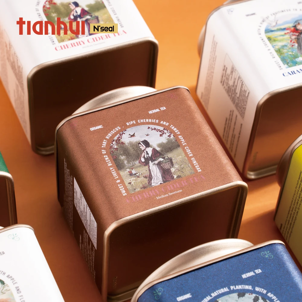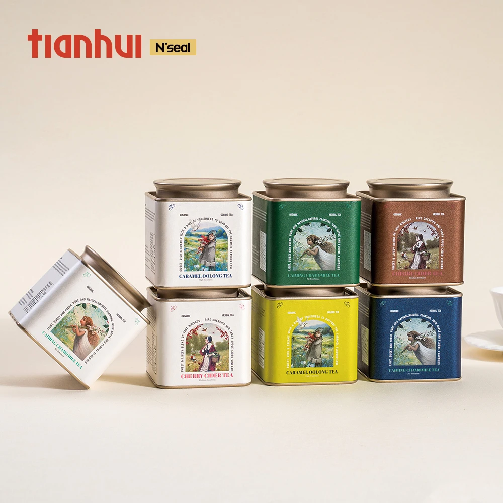 Tianhui Food Grade Square Airtight Cans for Tea Bags Storage Earl Grey Tea Black Tea Container